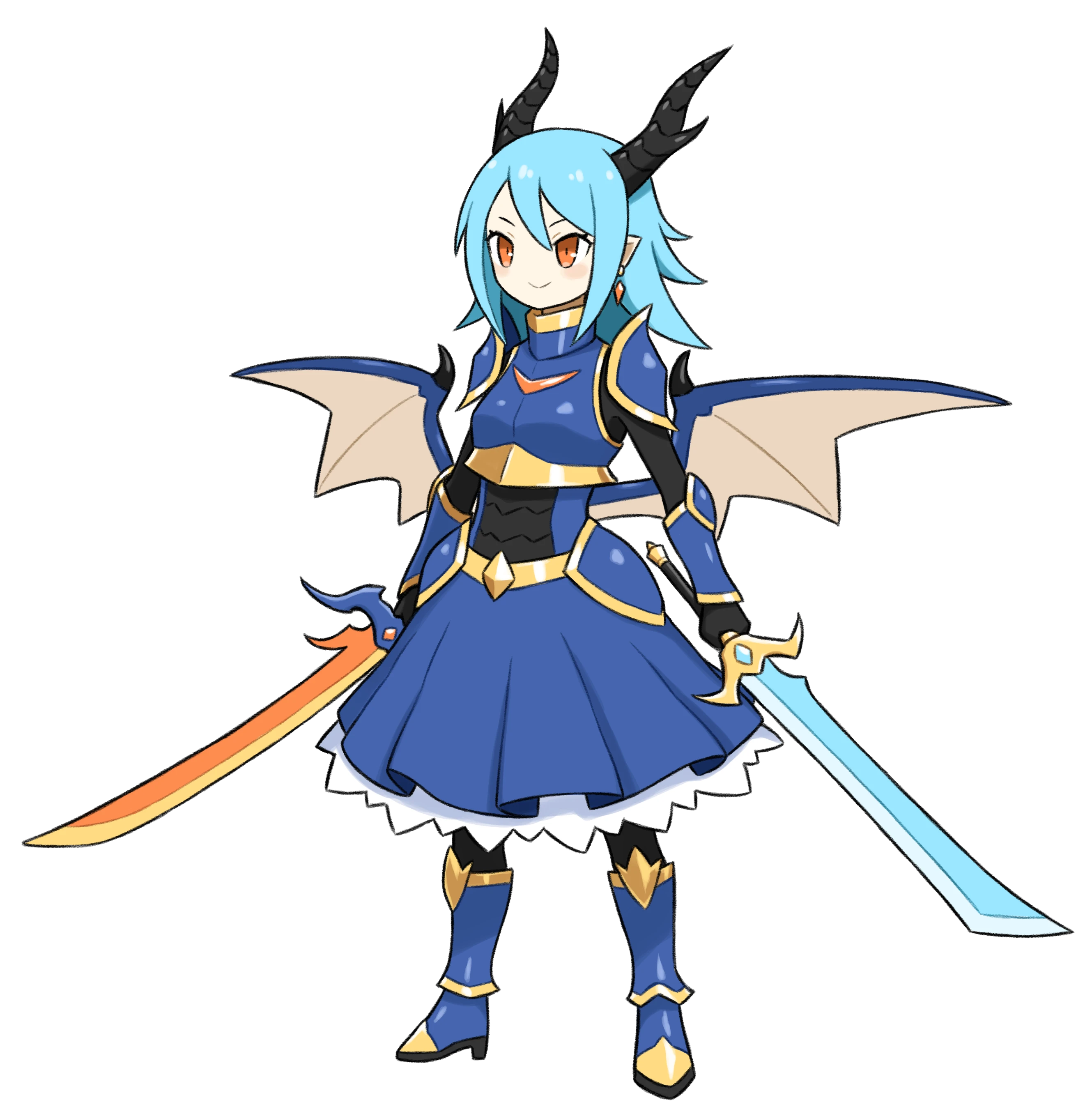 愛用武器は橙色の刃の剣『魔剣ビギニングラスター』、水色の刃の剣『フォーエバーグローリー』