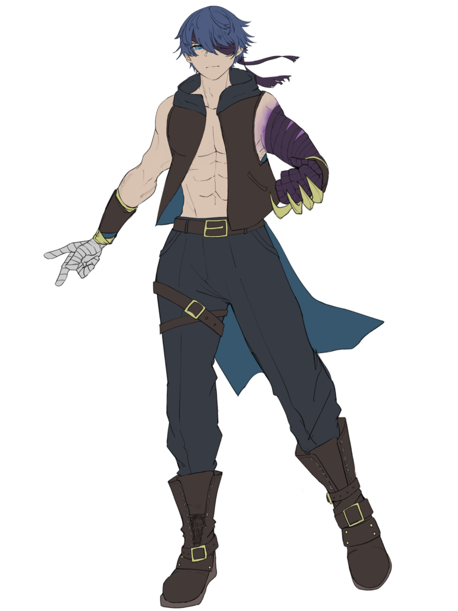 短い青髪にそれより澄んだ青の瞳。片目と両腕を覆う包帯が目立つがそれよりも左腕の禍々しい気配が何よりも目立つ。長身であり、威圧感もある為周りに人が寄り付かない。
