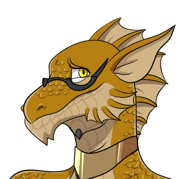 黄土色の鱗を持つリルドラケン。眼鏡を好んで着用する。
