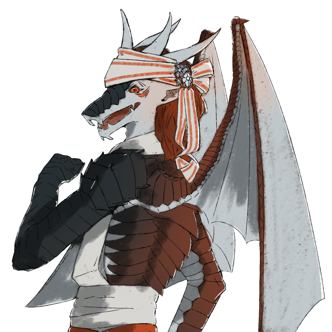 - [鱗の皮膚][尻尾が武器][剣の加護/風の翼]