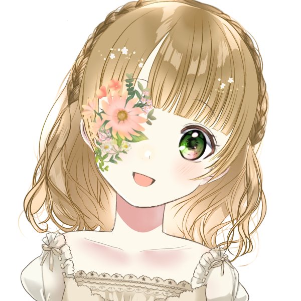 身長155cm、体重は秘密。セミロングの髪は細くてふわふわ。右目の花は嬉しいと咲き誇り、悲しいと萎れる。