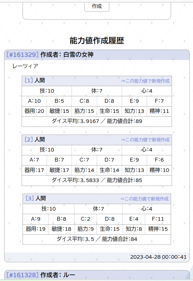 | 能力値作成履歴#161329-1 | ||||||||