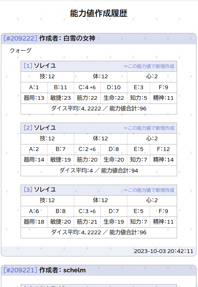 215 | 器用×2 | 敏捷 精神×2 白雪の女神