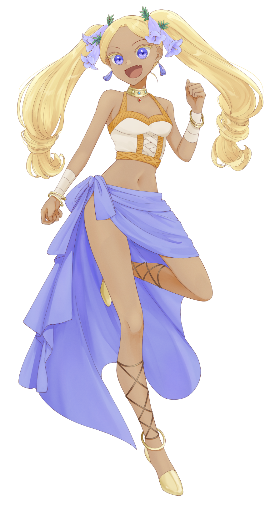 温暖な気候のもと、陽気な雰囲気のメリアの集落で生まれ育ったので基本的に元気で楽観的。