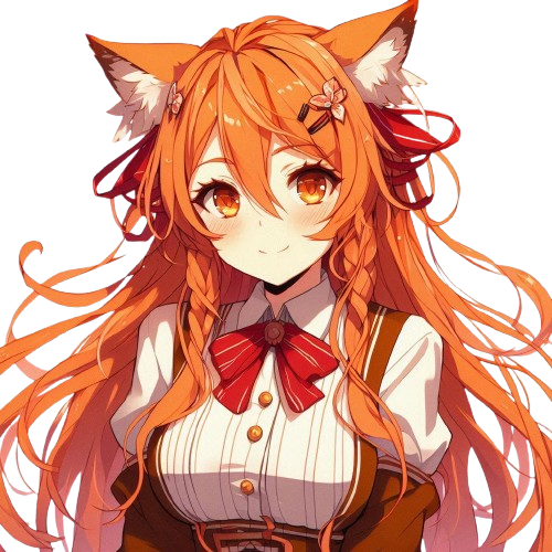 髪 オレンジ ロング 先を二又に結んでいる