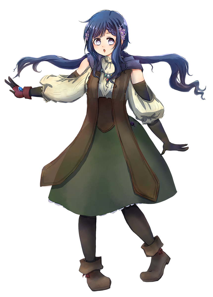 紺(黒)色の髪に薄紫の目。頭等にフリージアが咲いている。