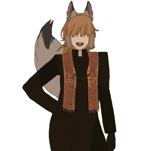 “魔法神”ウルティア様を信仰する敬虔なモンク僧のリカントで、冒険者になる前は朝から晩まで心信していた敬虔な信者です。部屋には宗教画が飾っていて、朝起きる時と夜寝る時に祈りを捧げる事が日課な敬虔な信者です。体毛は赤い(真っ赤ではない)です。