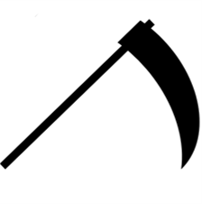 三日月のような大鎌をかたどったものを聖印としています。神像は折れた弓を踏みつけて膝をつく、ゆったりした服を着た女性の姿で作られることが多く、その手には聖印にも用いられる大鎌を握っています。