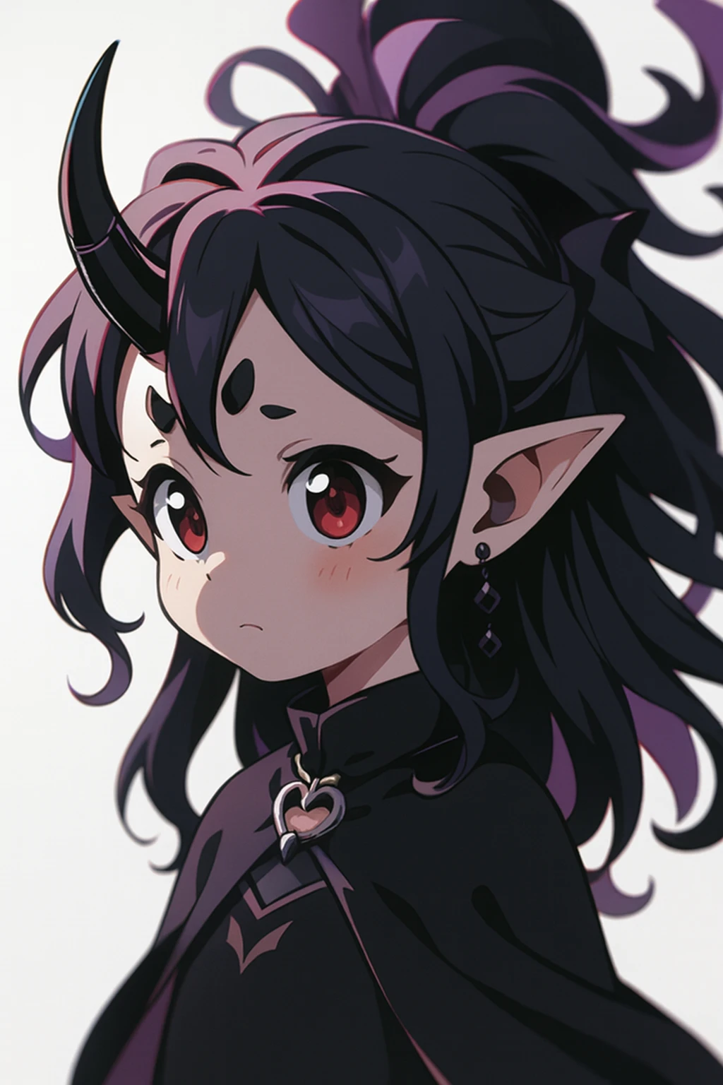 紫寄りの黒髪ウェーブのロングヘア