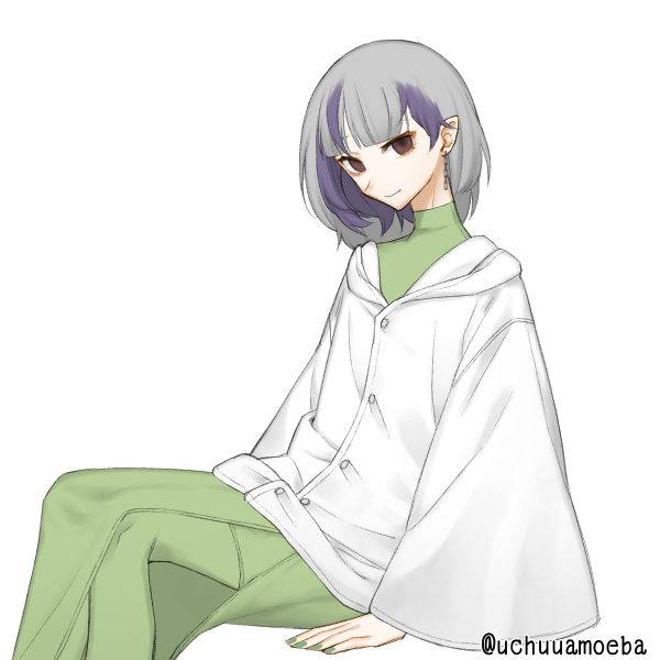 銀髪紫メッシュのエルフ