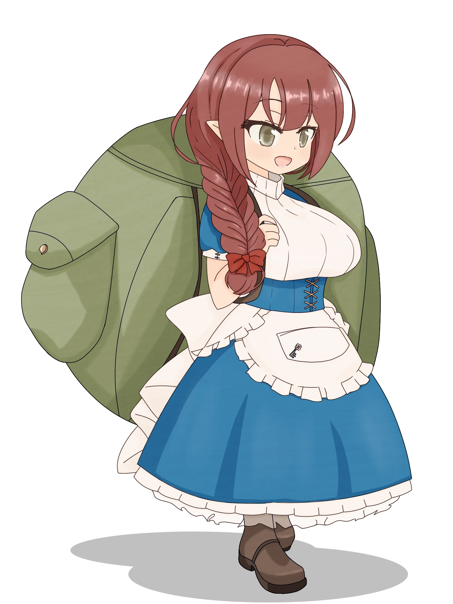 大きなリュックを背負ったグラスランナー。商人かつ斥候などのサポーターとして冒険者に雇われることもある。