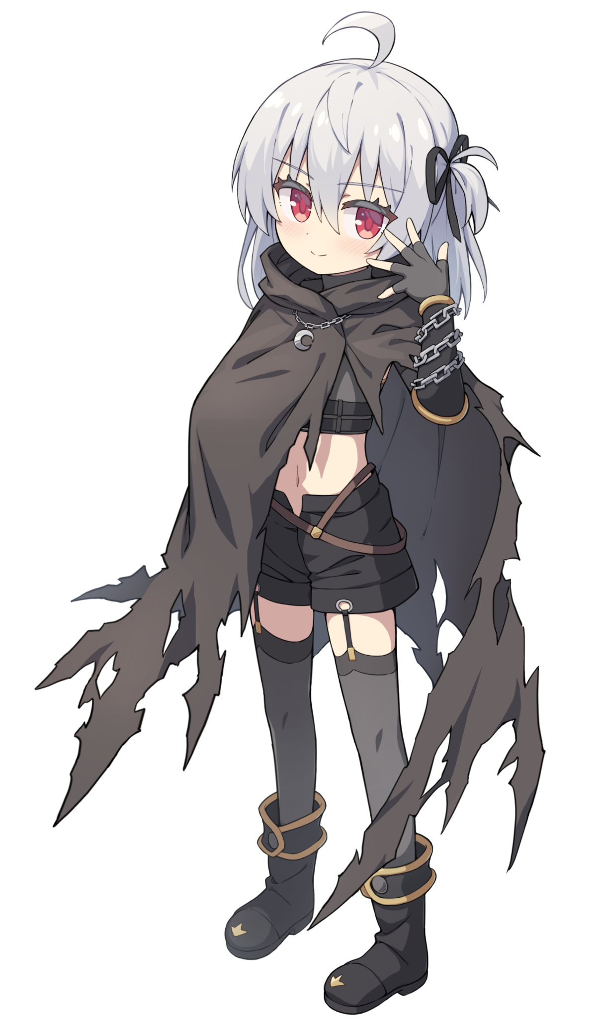 シルエットを隠すような黒色のボロボロなマントを着ていて、両腕には鎖が巻かれている。