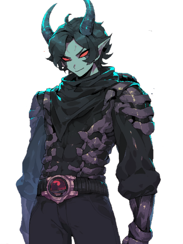 人族について知ろうと捉えられた人族から色々と話を聞いていた時に、ある変わった人族から聞いた仮面ライダーなるものの話を聞き、それを気に入り毎晩色々と話を聞くようになった。ある日外を散歩している時に、人族が蛮族に襲われている所を目撃し、何となくで助けた。その後安全圏まで送り届けた後にお礼を言われ、優しさに目覚める。それから悪を挫く正義の仮面ライダーとなる事を心に決める。それから何度か活動を続けていた時にいくつかの問題にぶつかる。まず人族圏での活動が難しい事。そして自分の力不足だ。このままでは全ての悪を挫くことは出来ないと悟り、いつしか目標は神となり真の悪の居ない世界を作る事へと変わっていた。そしてある時冒険者ギルドへ所属した方が人族圏での活動がしやすくなるだろうと所属する事にした。