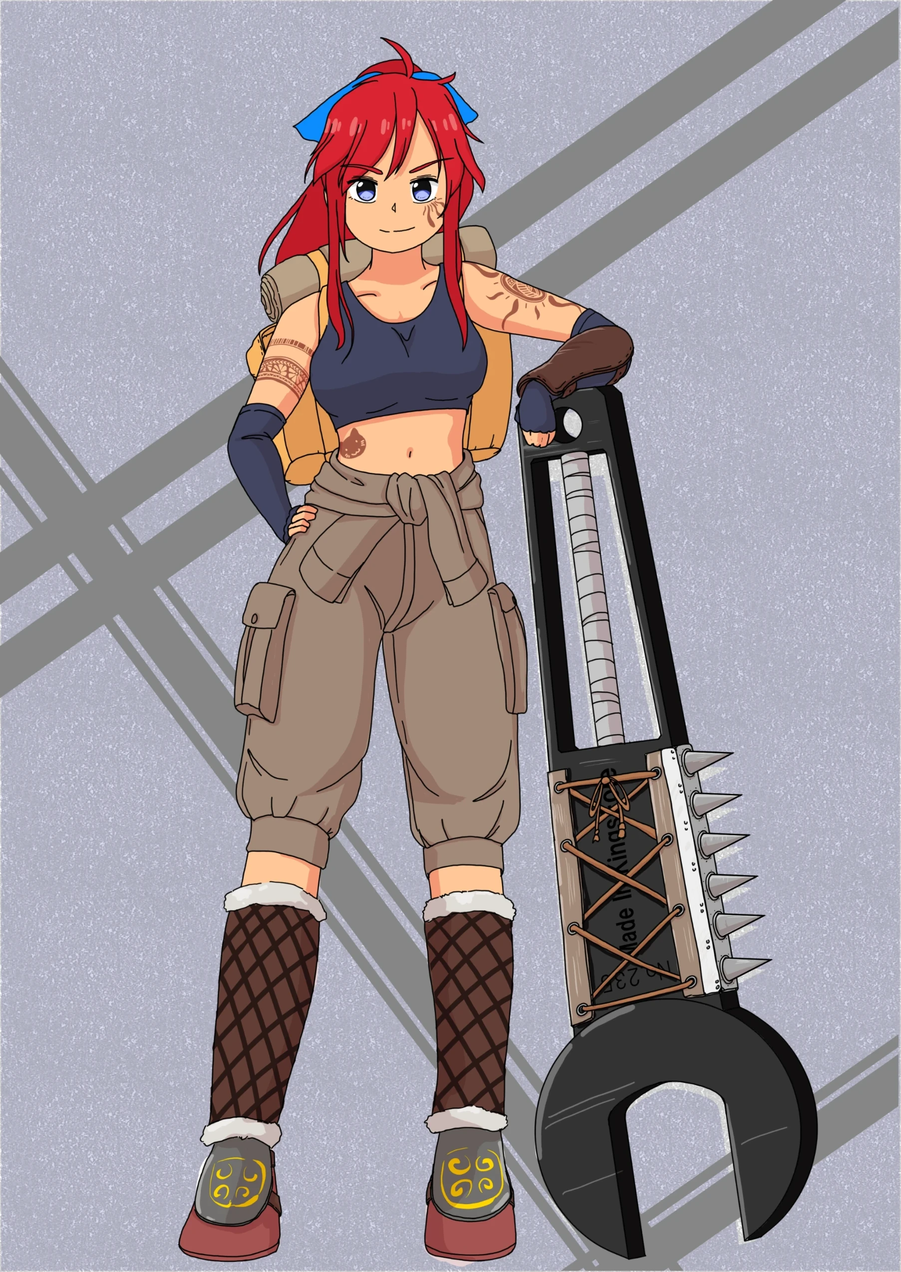 赤い髪、褐色の肌で巨大なスパナ(ポールメイス)を担いでいる。