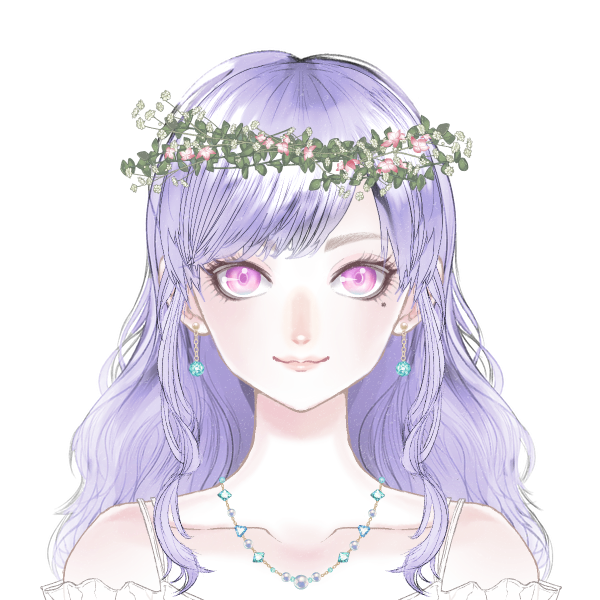 紫色の髪、ピンクの瞳