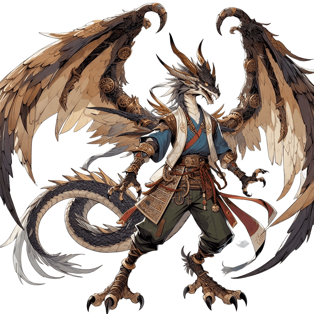 - [鱗の皮膚][尻尾が武器][剣の加護/風の翼]