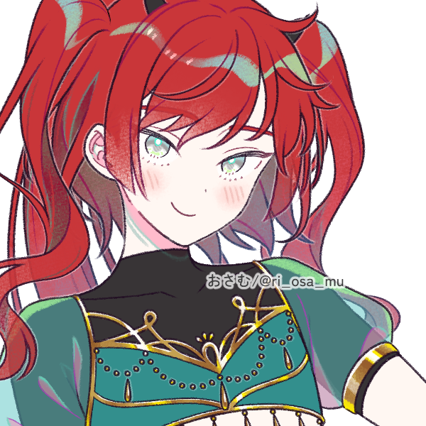 赤髪(地毛)のトライテール、黒い二本角。