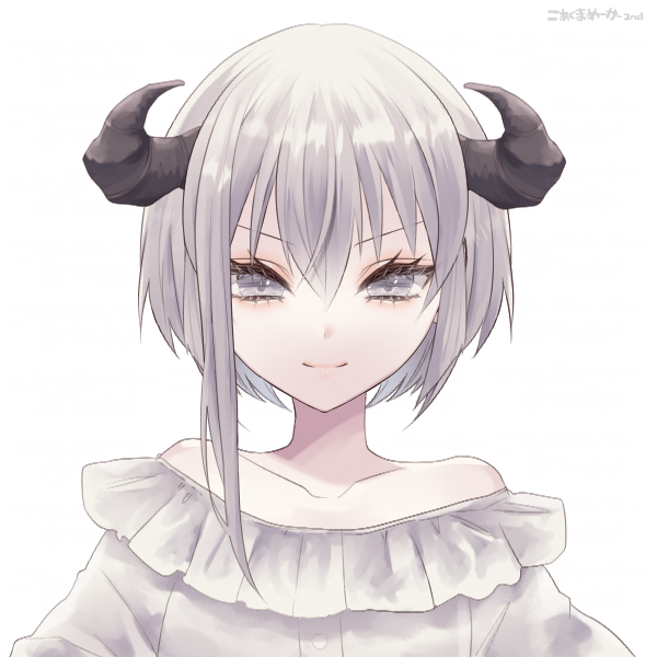 白銀色の髪と瞳、頭部から生えている湾曲した角、背にある皮膜の翼が特徴
