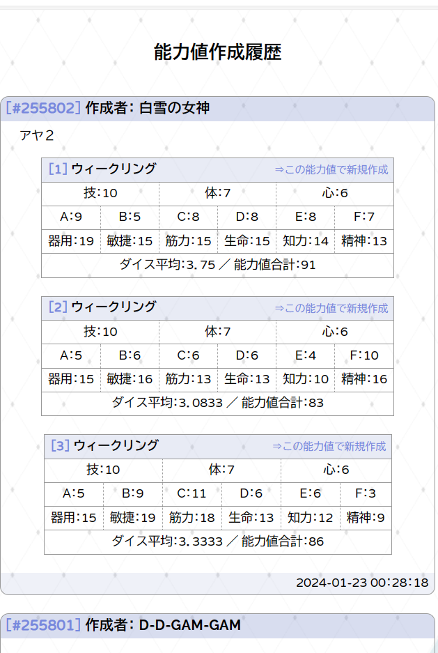 | キャラクター作成 | 3,000| 1,200 |