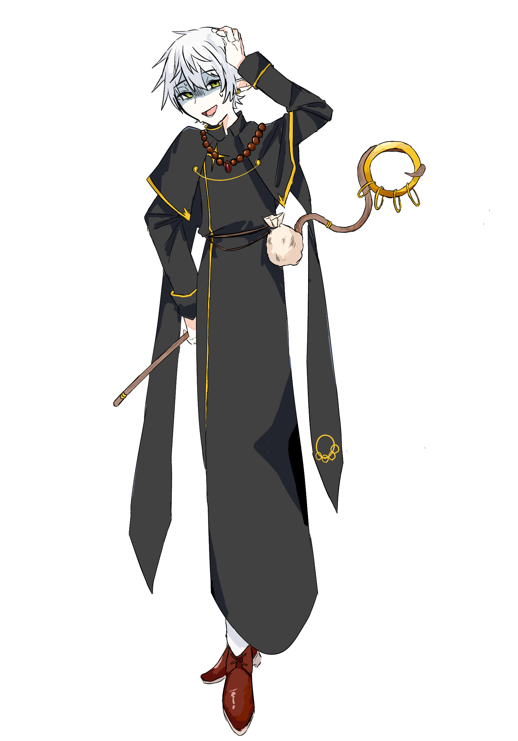 白髪のエルフの男性。細身の長身で容姿端麗。身長は180センチメートル。