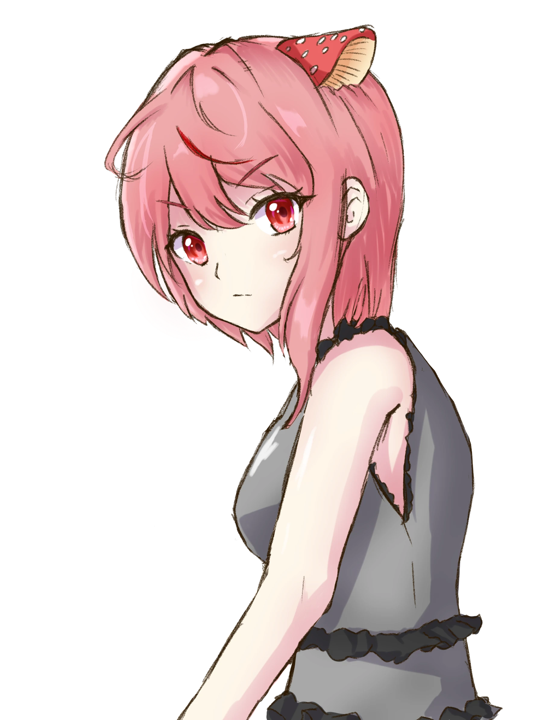 - 真っ赤な髪と赤黒いキノコ