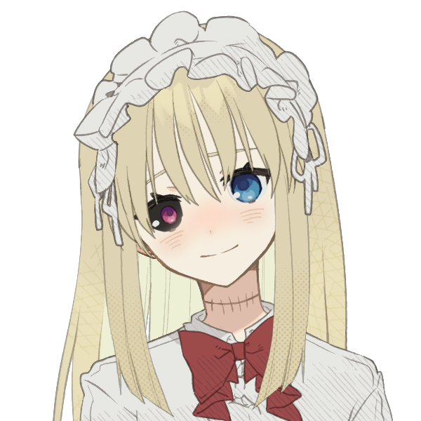 黒眼が人をおびえさせてしまうため、自ら抜き取って可愛い印象を受ける青眼を入れた。