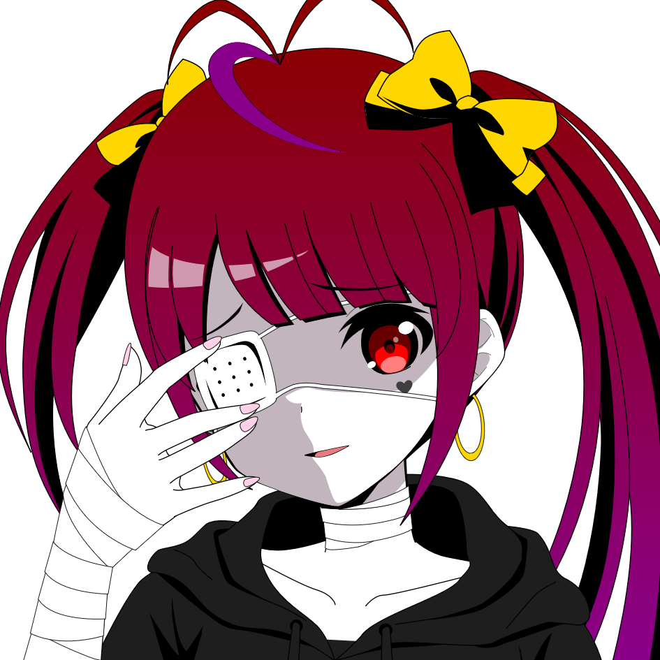 その娘は赤とちょっとだけ紫の髪をツインテールをしています。そして右目に眼帯が着けてます、眼帯の下はバジリスクとしての証明、見た人を石化能力を持つ石化の目。