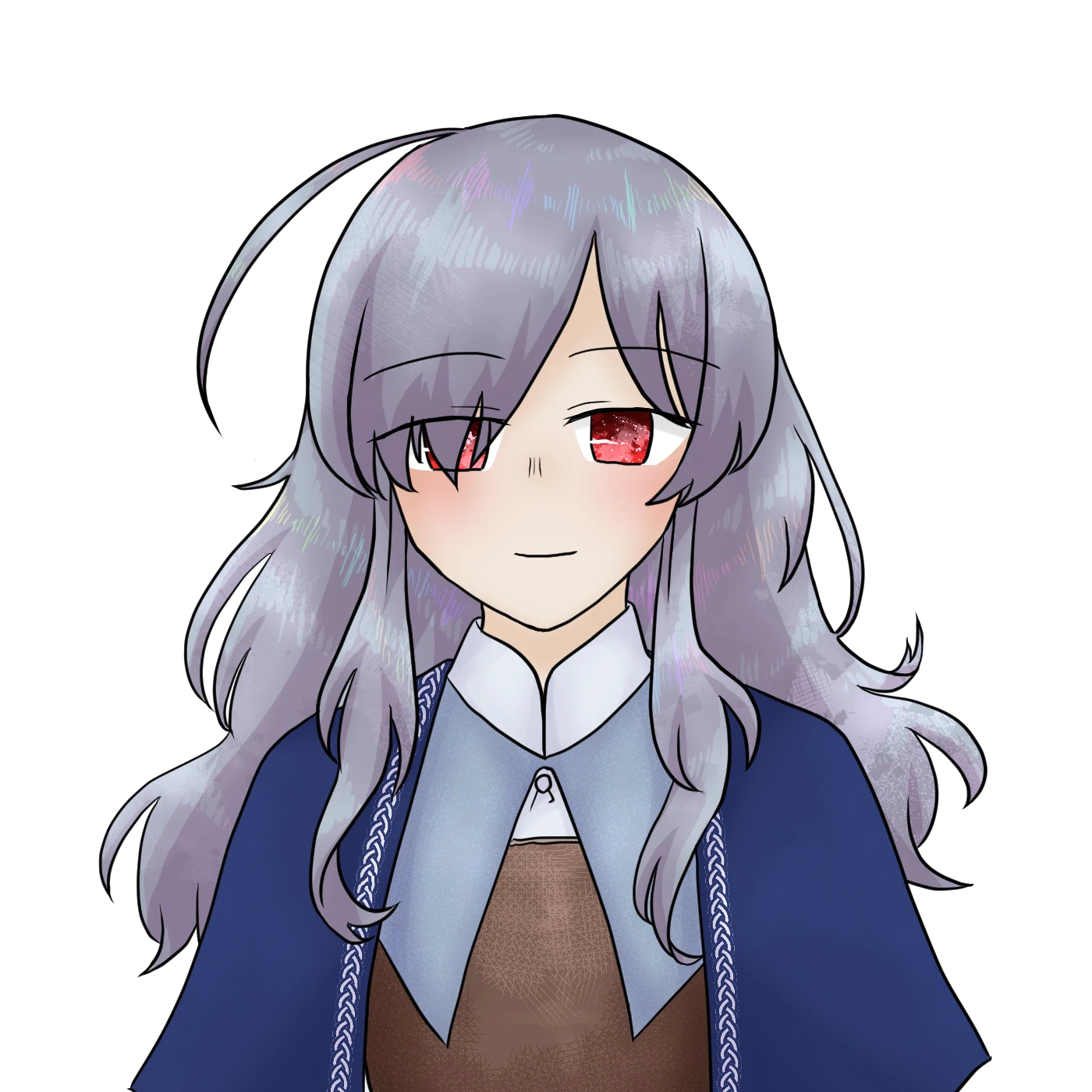 銀髪。赤目。癖毛ぎみのロング。