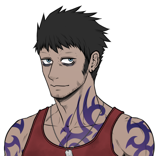 ・上はタンクトップ、下はカーゴパンツに腰布。腰布の下にアルケミーキットを隠している。