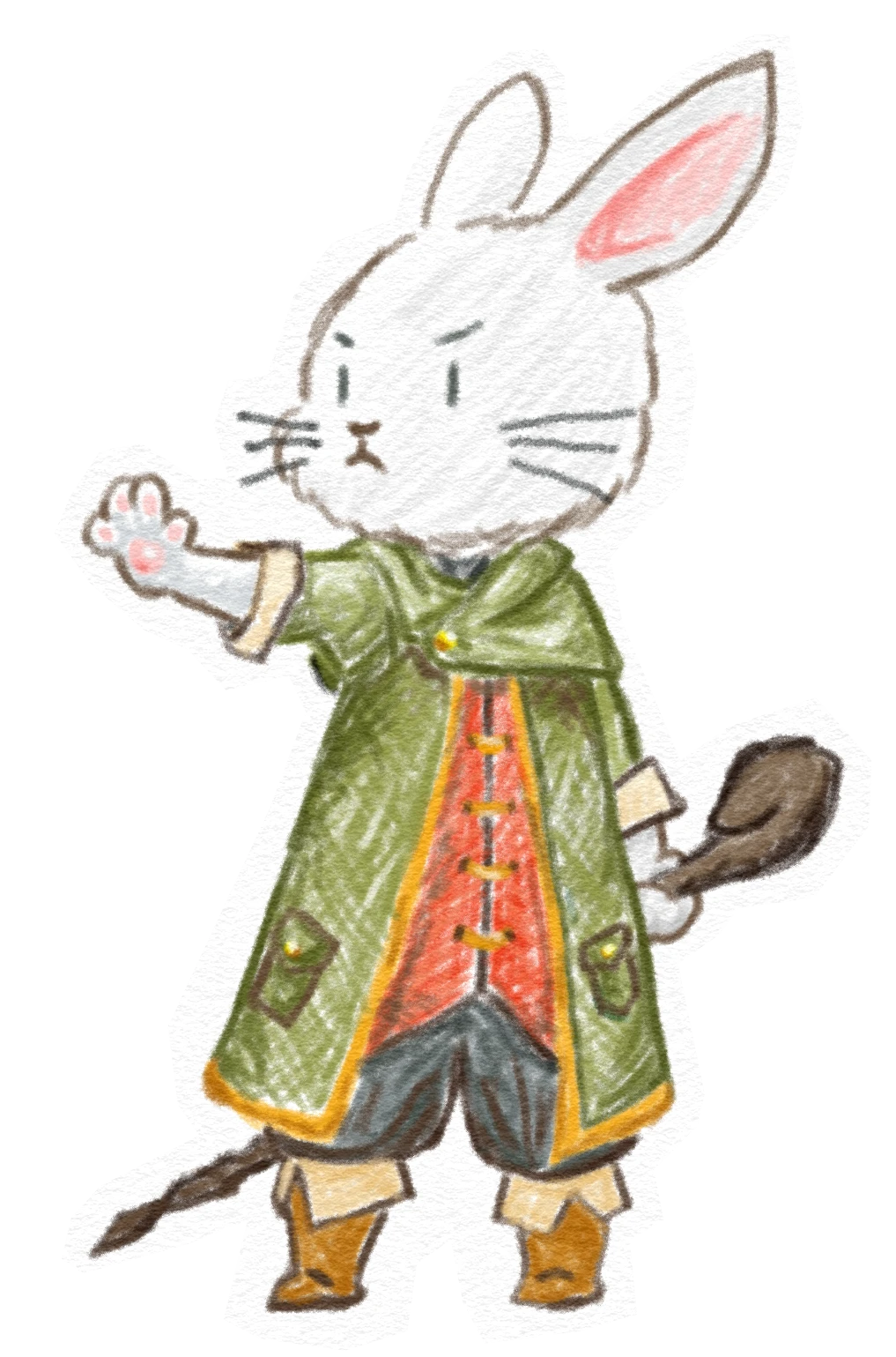 本人は元々エルフか人間で奈落の呪いでウサギの姿になってしまったと思っている。呪いを解く術見つけるために奈落へと挑もうとしているが…