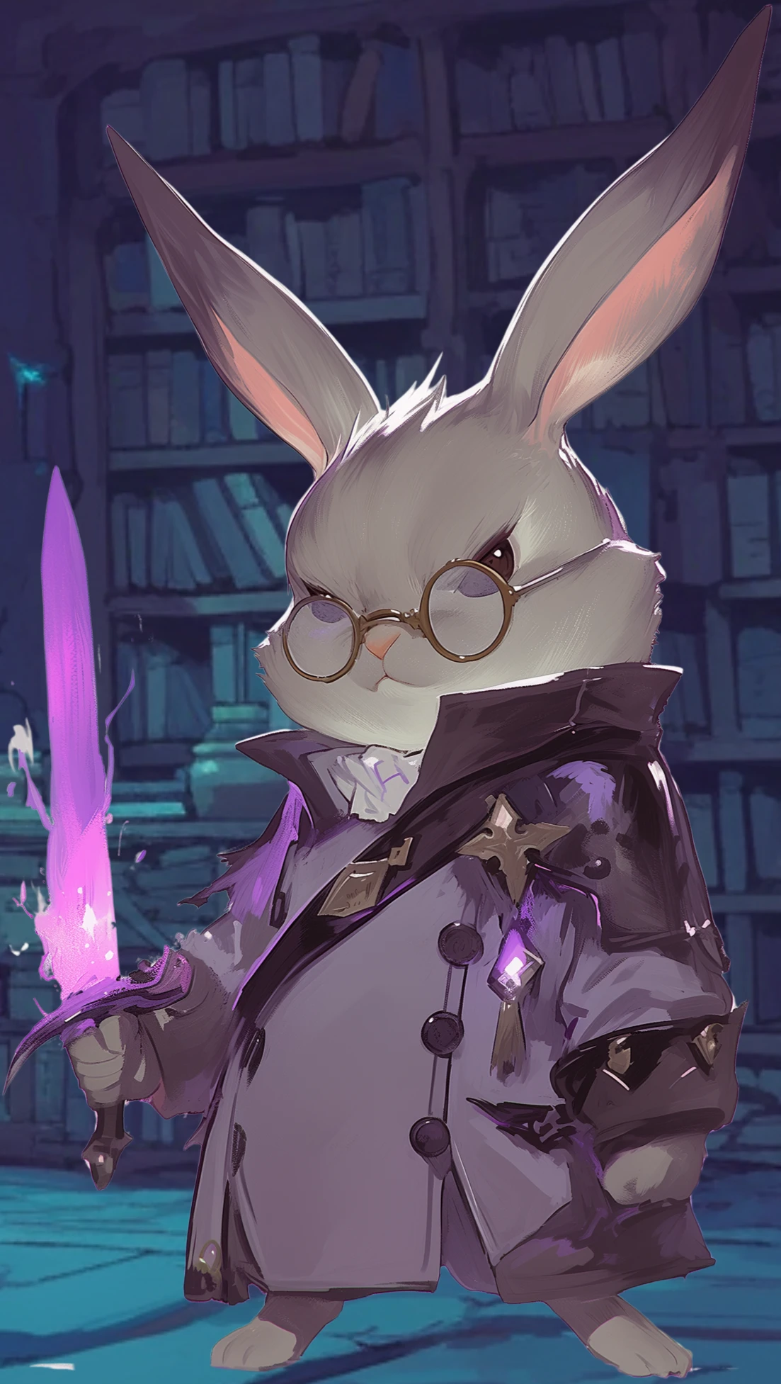灰色がかった毛並みに丸メガネ。同種族と比べても小柄な体格と、妙に自信ありげな表情。