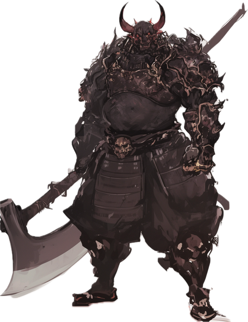 貪欲に力を求める猛き武士、大破局時に幾千もの戦果を上げ無数の人族の集落を壊滅させた伝説のダークトロールを家系に持つ。自らは未熟であると自覚しているものの、最強の戦士になる為日々の鍛錬を欠かさない。終わりなき究道こそ彼の進むべき道なのだ。