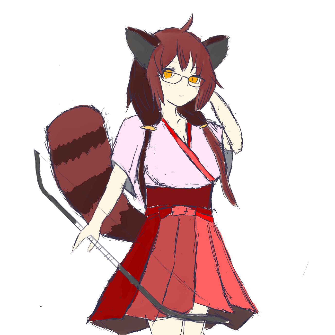 「私、射手でしね...え?はい、武器は弓です...。あはは、すいません、ハジキなんて洒落たもの扱えないんですよね」