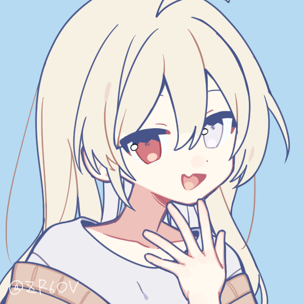 青白い肌、特徴的な赤い目と白い目のオッドアイ、長いさらっとした金色の髪