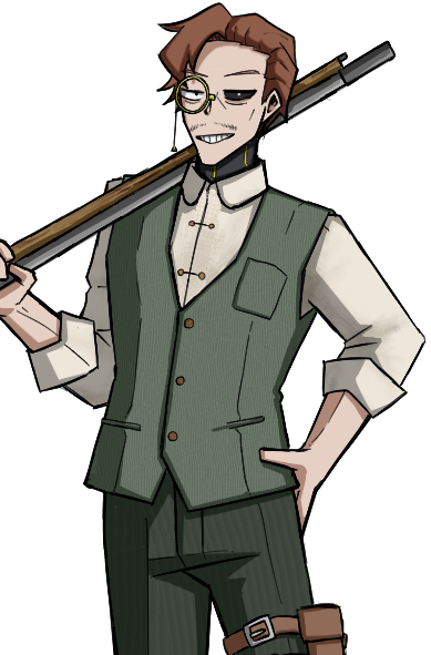 胡散臭いヒゲ面かつにやけ面。背が高い。