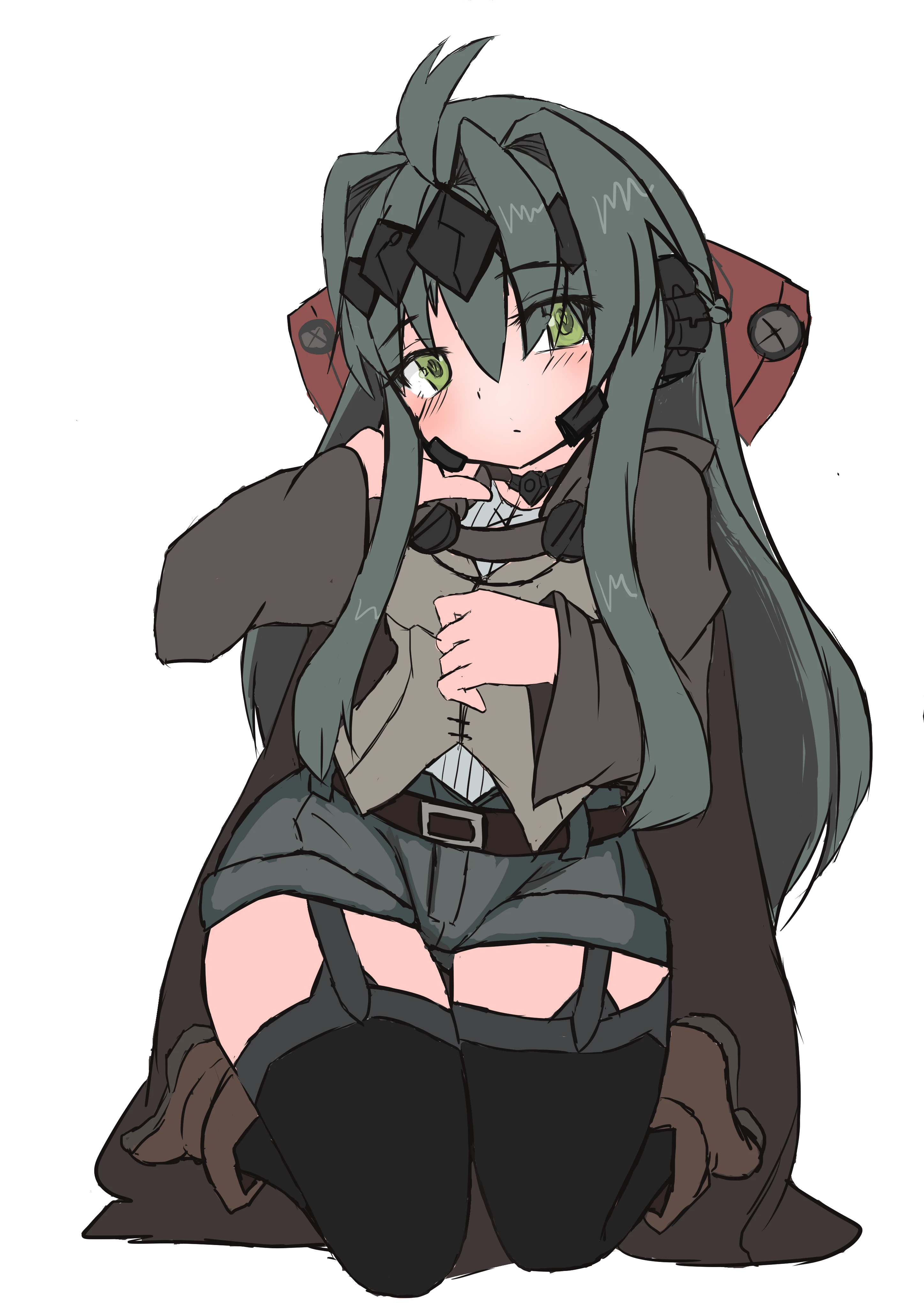 カチューシャ型の硬質の飾りと頬の、首に硬質素材がありラウンド型のアンテナのようなヘッドデバイスのような特徴をもつルーンフォーク。髪色は若葉色、くせ毛のあるロングでネジのついた飾り付きのリボンをつけてまとめている。瞳はアクアマリンのような色。身長は148㎝程とドワーフに近い小柄な身長をしている。