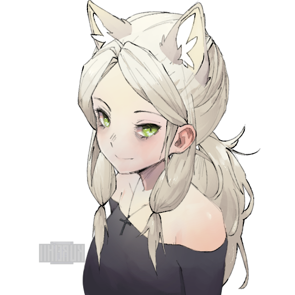 白色の髪の毛が特徴的で、長い髪は横と後ろで簡単に束ねている