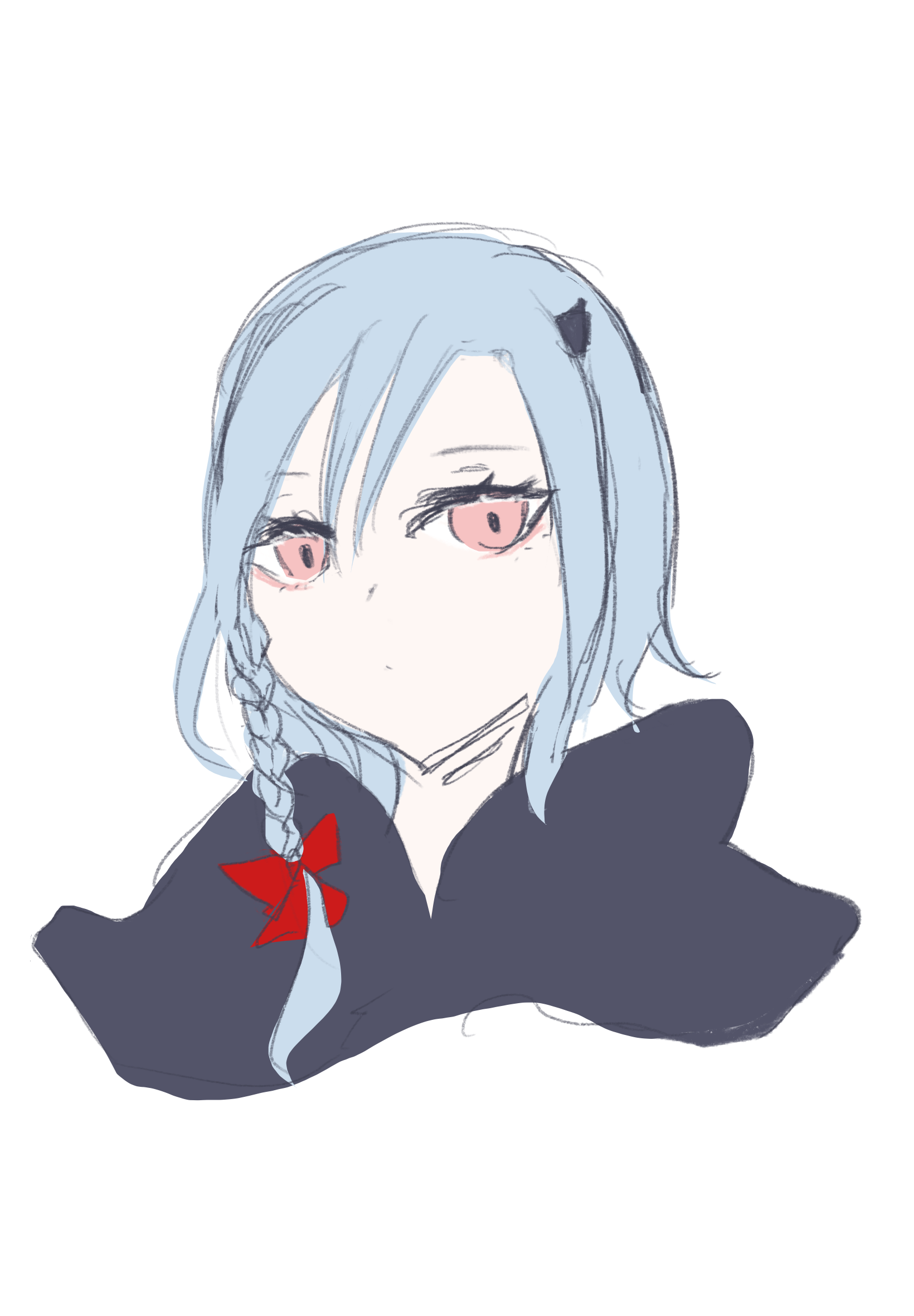 ・右目側に三つ編み、赤いリボン