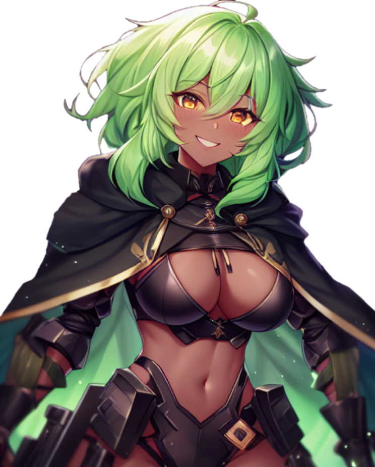 容姿:褐色緑髪の女性。