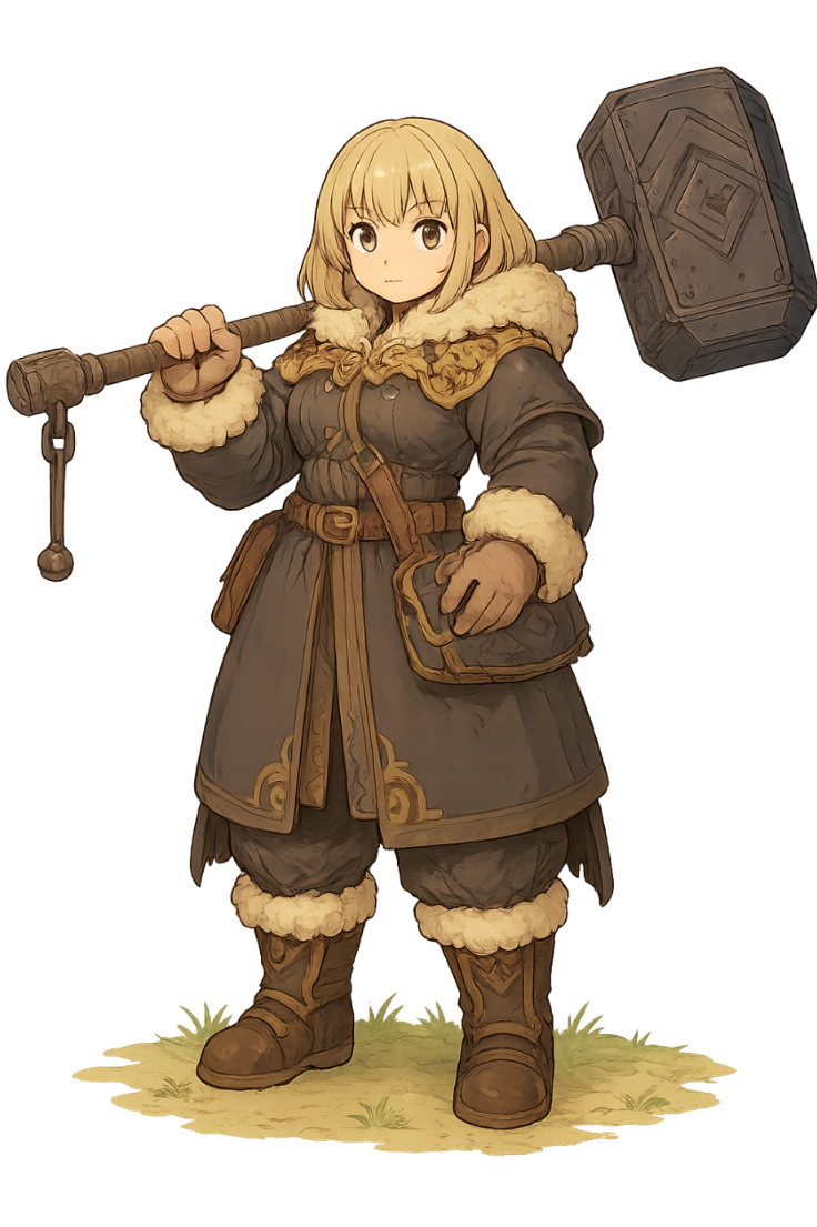 冒険者としては剛力無双の力持ちかつ指先が器用だが、知力はおざなりで素早い動きが苦手。