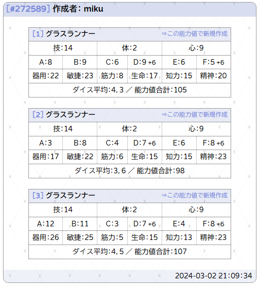 | 能力値作成履歴#272589-3 | ||||||||