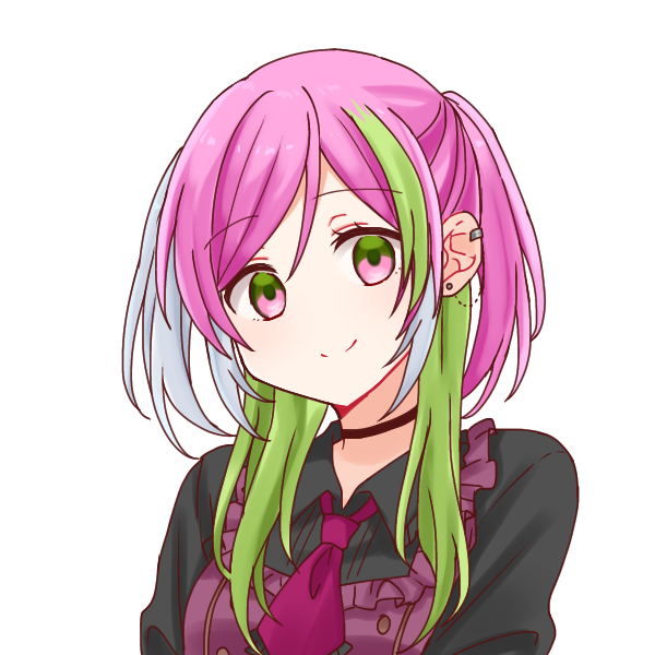 まず目を引くのはド派手な髪の毛。これはティエンスやドワーフとの混血に由来したもので、つまり完全に地毛。瞳も髪と同じようなピンクと緑で、こちらも生まれつき。身長はやや低めで四肢も細く年齢のわりに子供めいた容姿だが、胸や尻への脂肪の付き具合は年齢相応どころかむしろ豊満。