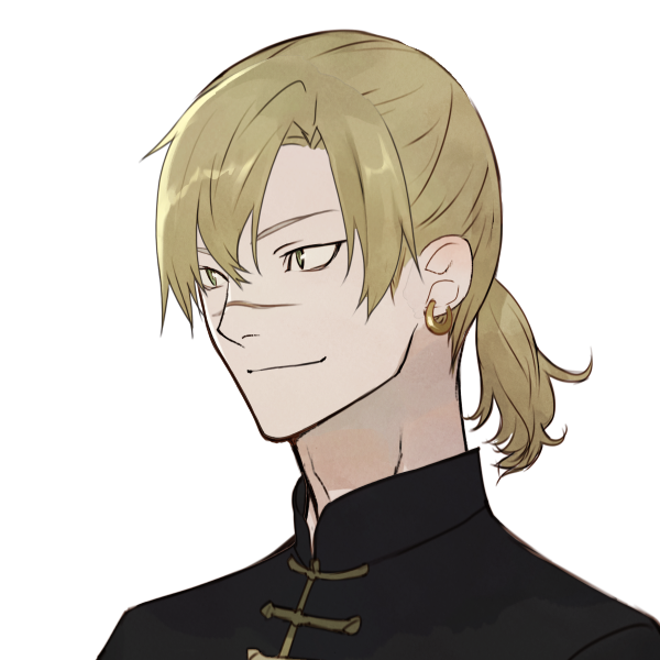 くすんだ金髪と薄い緑の瞳の青年。人族としては、やや細身かつやや高めの身長(175cm)である。