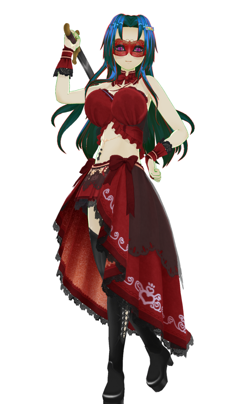 享楽で旅をしているバジリスクの女性。旅人に似つかわしくないドレスめいた皮鎧に身を包み、舞踏会の方が似合いそうな仮面が特徴。