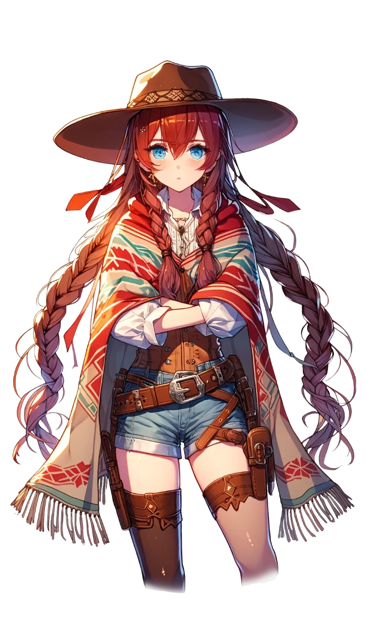 三つ編みに組ひもを使っており、組ひもの『放浪する者』を正に体現したような容姿をしている。