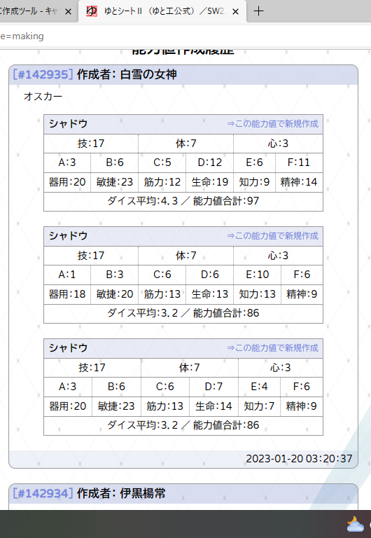 | キャラクター作成 | 3,000| 1,200 |