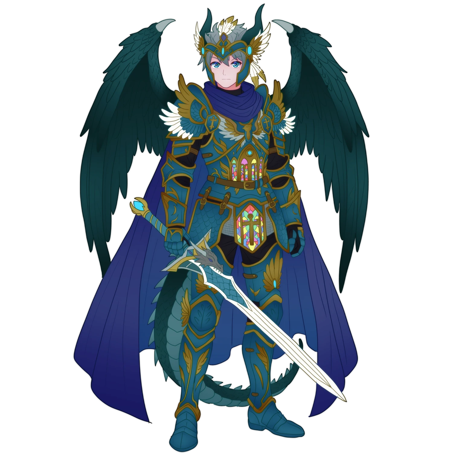 艶やかな碧の鳥毛が並ぶ翼が、印象的で、威圧的な、若きドレイクの青年。