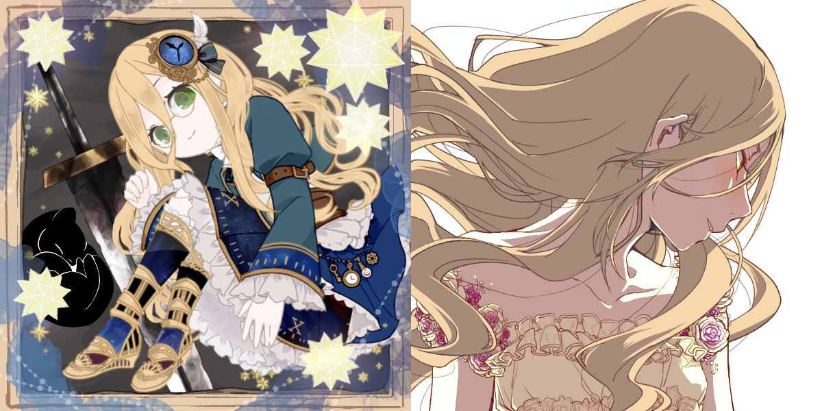 コメット・テンパス、魔法文明時代から12世代間、現在コロロポッカとして知られる森にある秘宝を守り続けたスプリガン家族の末裔。彼女は魔法文明時期の服装を着ている、こんな服装は現代では歴史博物館などでしか見られないが、最近では魔法文明の服のレプリカもあるが、それはかなりニッチなファッションのようだ。傍にいる武器は、使い古され、鞘に収められていない、彼女同じくらいの高さの、腰の後ろに水平に携えている、かつて兄が使用した両手持ちのロングソードです。