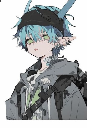 肌は色白。角が見えないようにフードを被っている。(顔は見える)