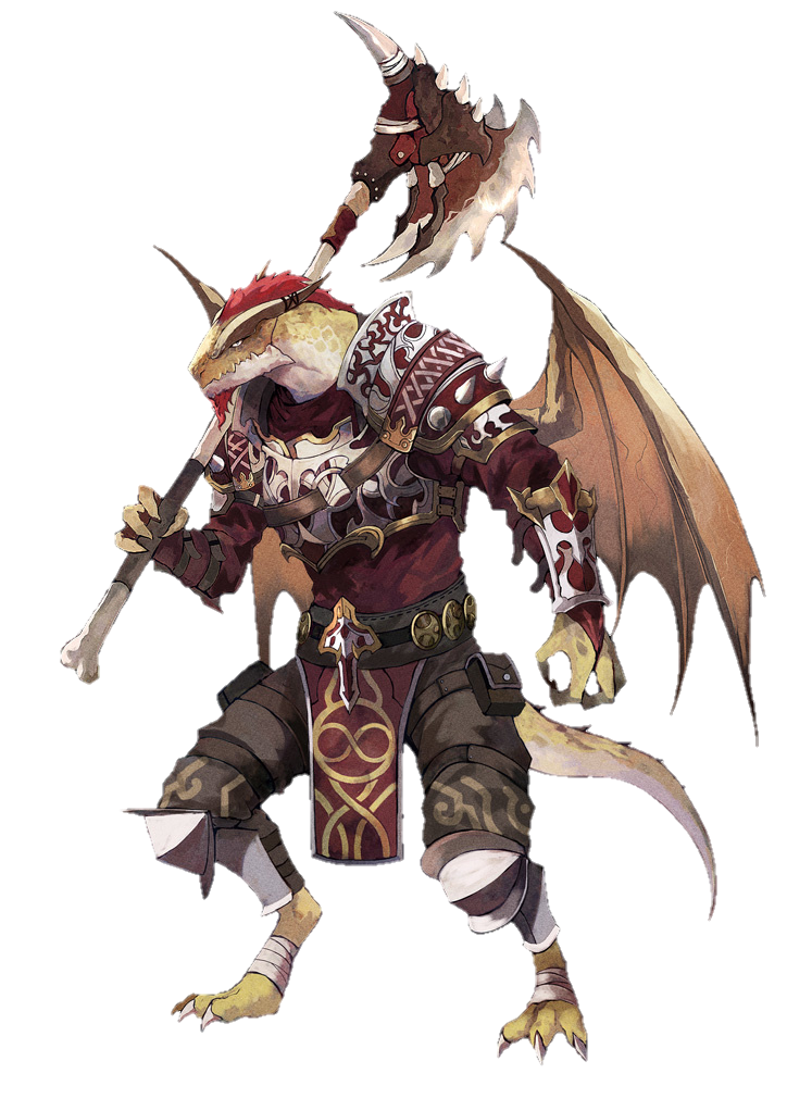 - [鱗の皮膚][尻尾が武器][剣の加護/風の翼]